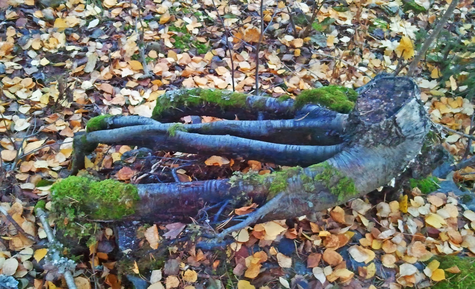 Löysimme eräästä kivikkoisesta niemenkärjestä syvänteen ja luolan, jonne oli kirjoiteltu puumerkkejä hiilellä. Huomion arvoista oli, että kaikki merkinnät olivat tältä vuodelta, puhdistavatkohan talven sateet seinämän joka vuosi valmiiksi uusille merkinnöille?